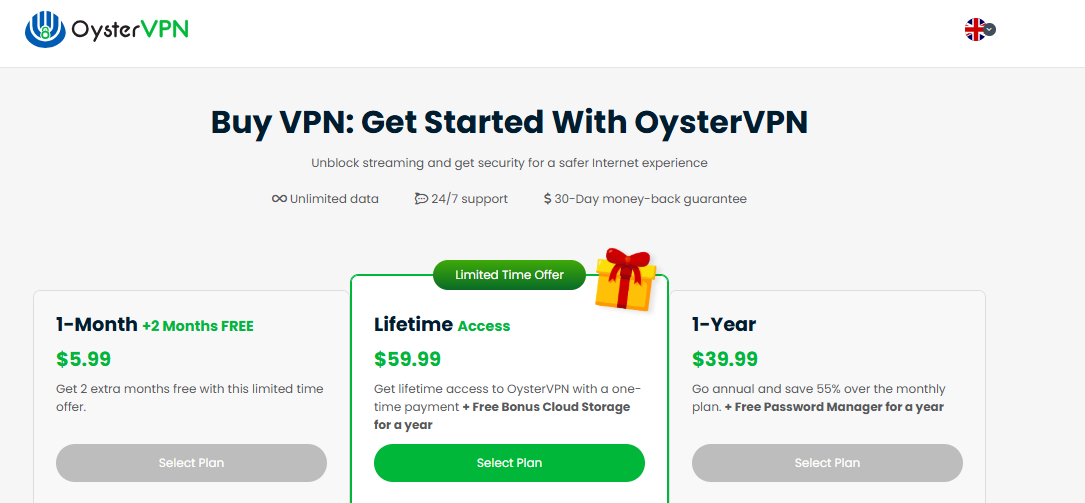OysterVPN wants to be your go-to budget VPN. Its prices are pretty good, especially if you sign up for a longer plan. You can get some sweet discounts that way. Plus, they offer a 30-day money-back guarantee. So, you can try it out risk-free.