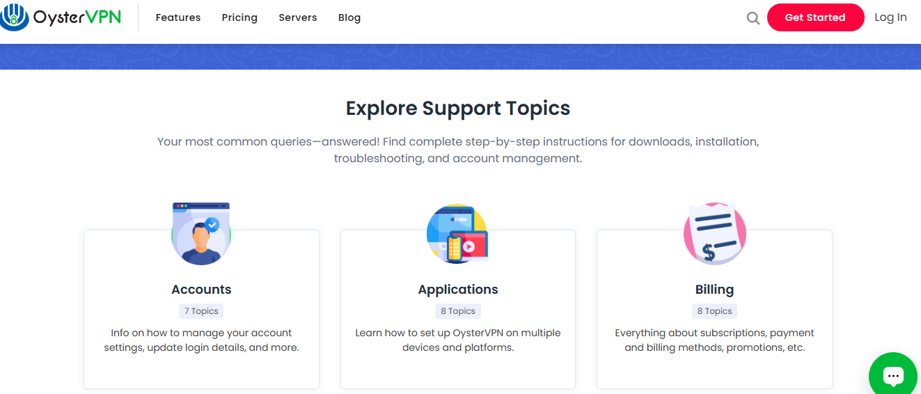 OysterVPN offers customer support in a couple of ways: through live chat and email. The live chat is usually pretty quick.