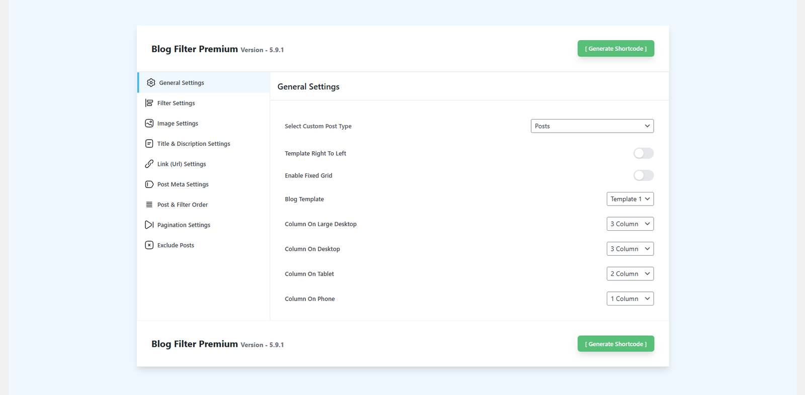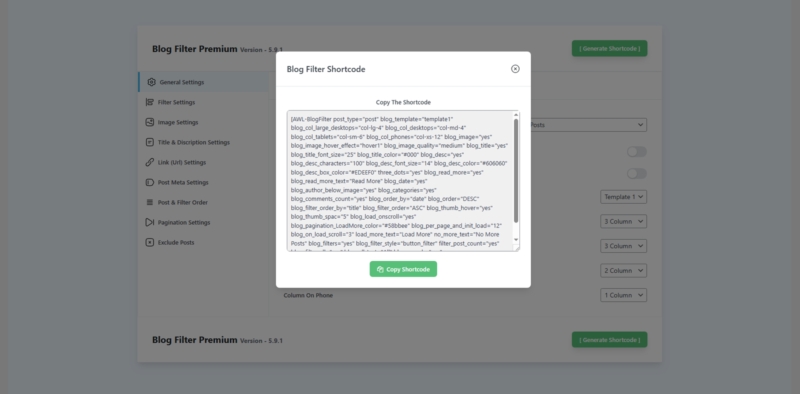 Blog Filter Premium provide you sortcode generate, so you can generate sortcode very easily.