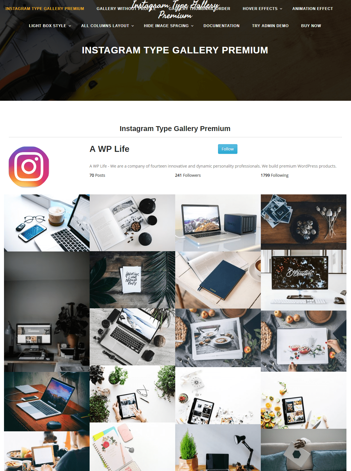 Beautifully Designed, Powerful, and easy to Customize - Instagram Type Gallery Premium the best Plugin For your Bussiness Showcase.