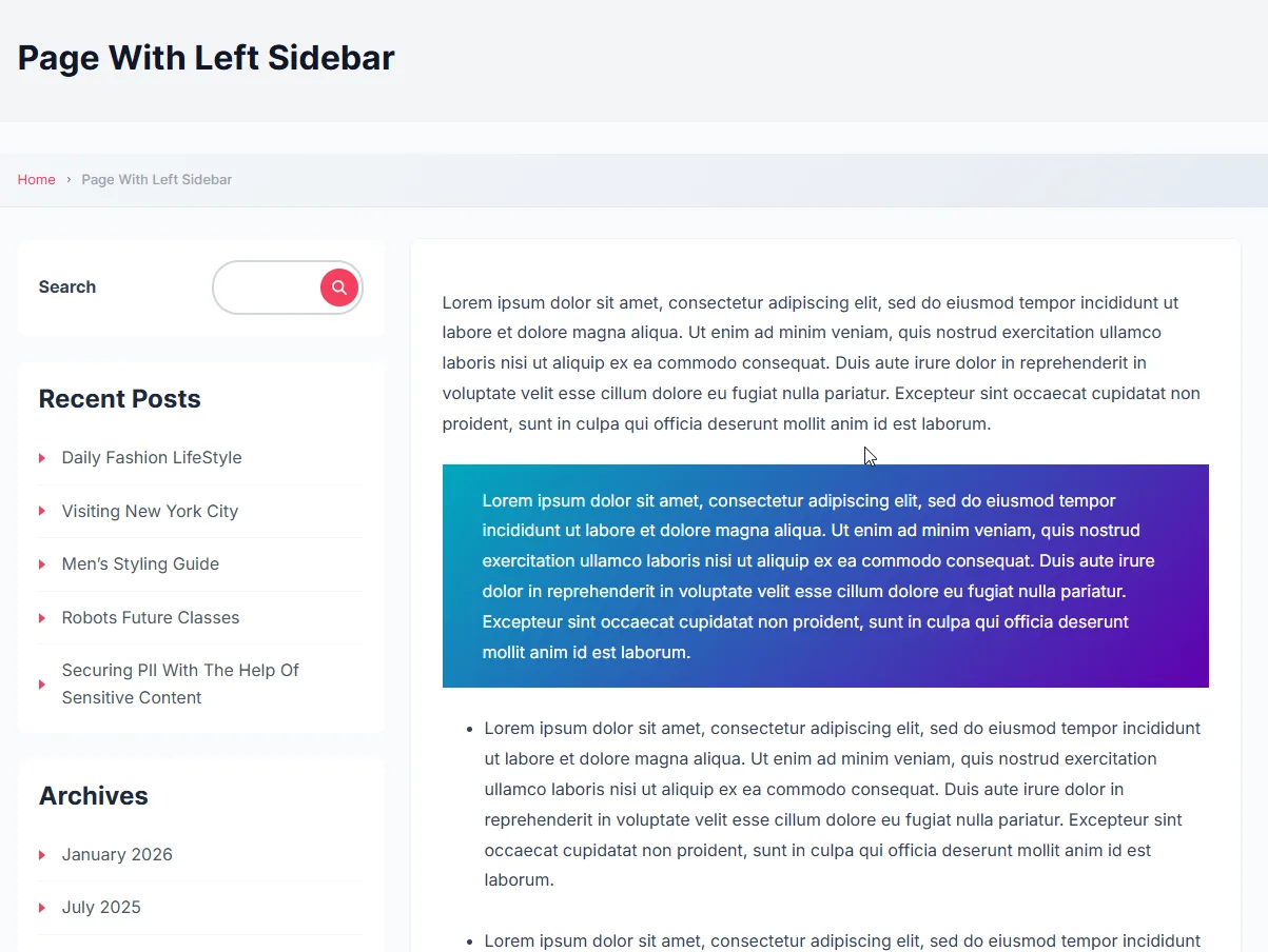 FeaturesSetup your site as one of these or easily create new layouts that fit your needs.