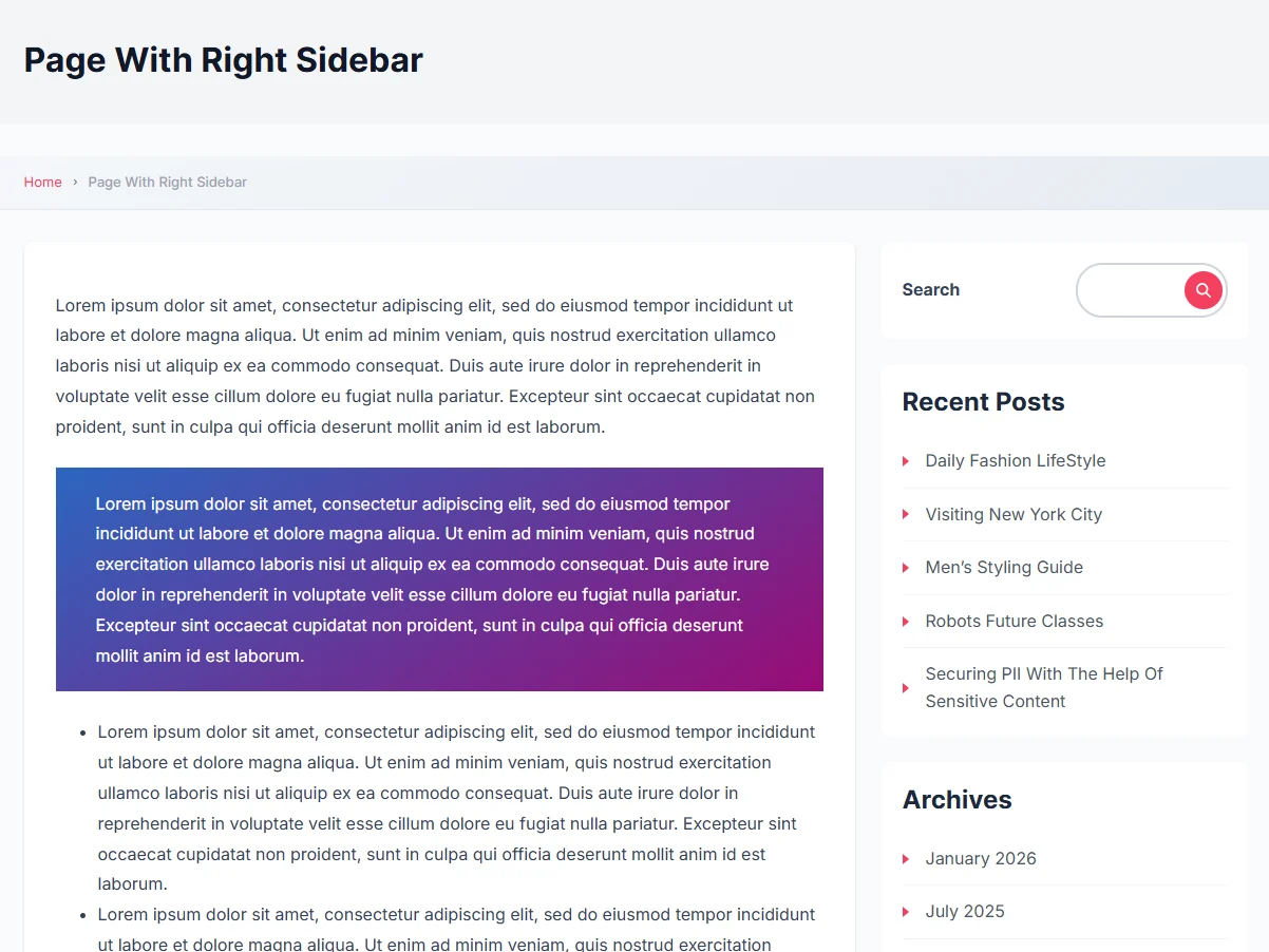 Setup your site as one of these or easily create new layouts that fit your needs.
